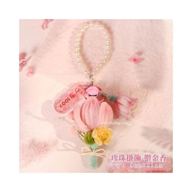 毛根珍珠吊飾材料包︱DIY掛飾 向日葵 玫瑰花 扭扭棒 手作 禮物 裝飾素材︱麥手作