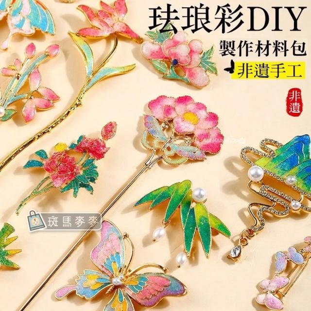 琺瑯彩材料包︱ 送教程 工具包 髮簪 胸針 合金飾品 非遺 手工DIY材料包 手作材料包 非遺手作 ︱麥手作