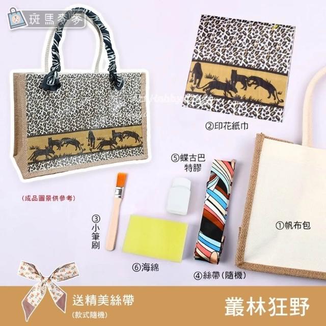 橫款絲巾麻布袋-材料包︱團課親子活動 蝶古巴特 手提袋diy材料包 帆布包 麻布袋材料包 拼貼麻布袋︱麥手作