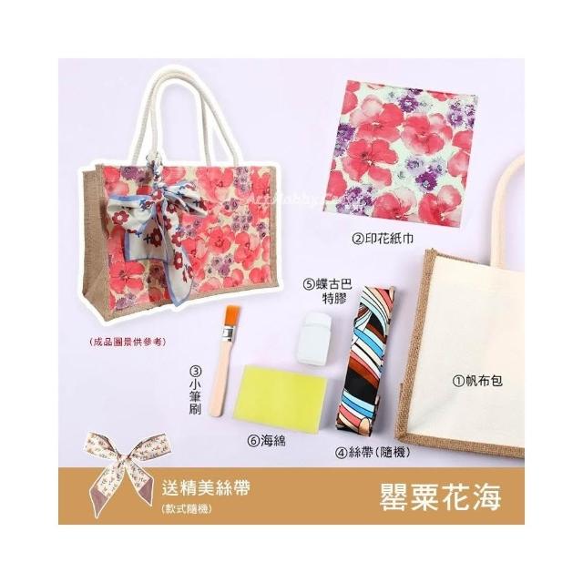 橫款絲巾麻布袋-材料包︱團課親子活動 蝶古巴特 手提袋diy材料包 帆布包 麻布袋材料包 拼貼麻布袋︱麥手作