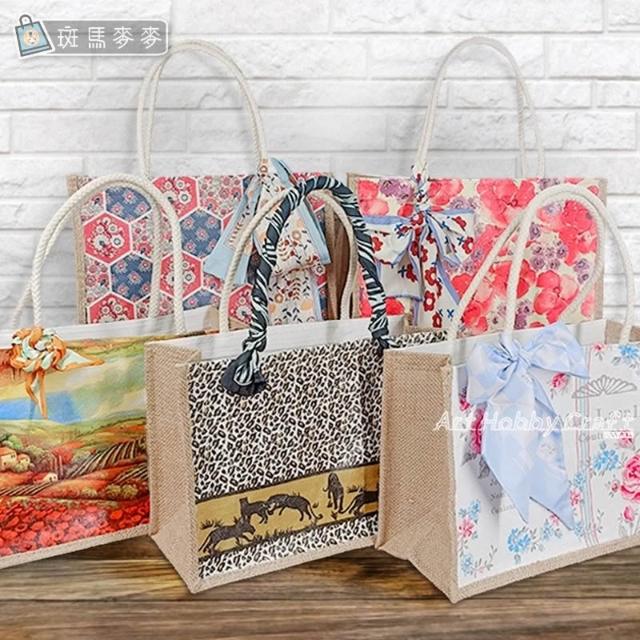 橫款絲巾麻布袋-材料包︱團課親子活動 蝶古巴特 手提袋diy材料包 帆布包 麻布袋材料包 拼貼麻布袋︱麥手作