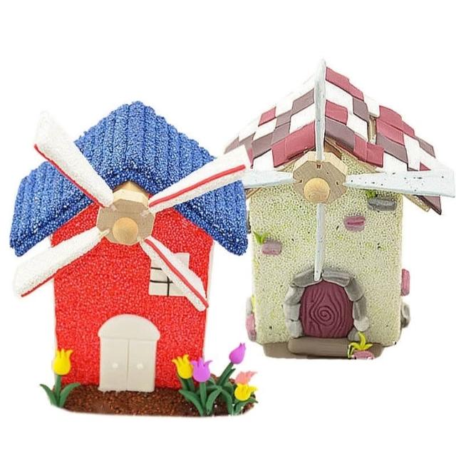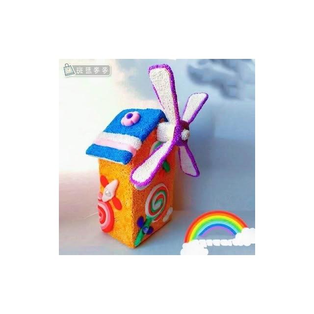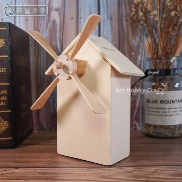 木質風車存錢筒︱DIY風車房子 木質白坯 彩泥黏土 雪花泥裝飾 手作兒童創作 親子手作︱麥手作