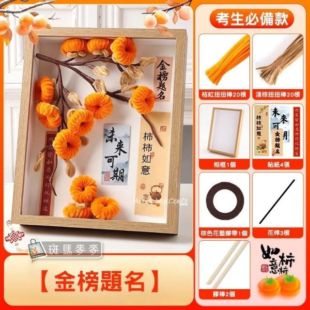 柿柿如意相框畫︱台灣現貨 扭扭棒十吋相框 柿子擺飾DIY材料包 手作材料包 手工花束相框 手作 幼稚園 安親班∣斑馬麥麥