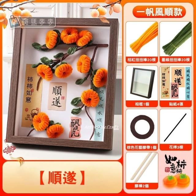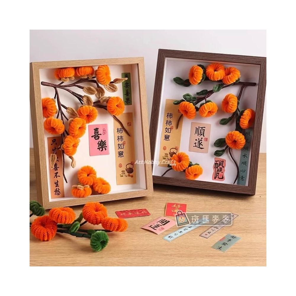 柿柿如意相框畫︱台灣現貨 扭扭棒十吋相框 柿子擺飾DIY材料包 手作材料包 手工花束相框 手作 幼稚園 安親班∣斑馬麥麥