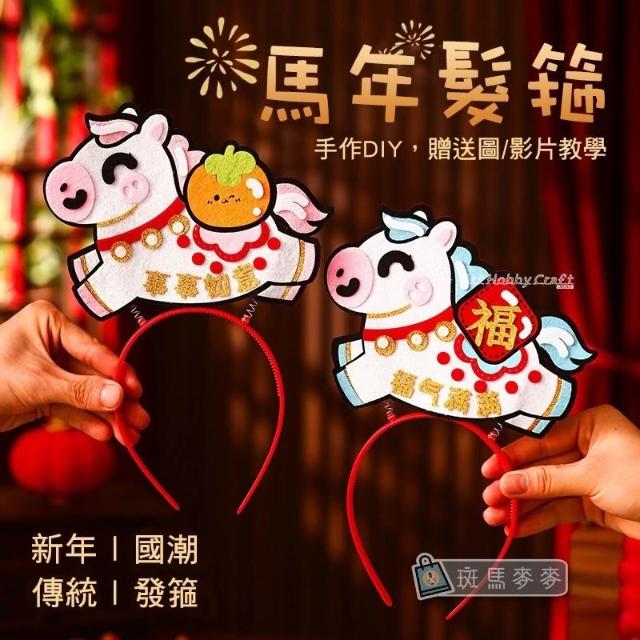 新年髮箍材料包︱馬年髮箍 兒童禮物 親子diy頭飾 元旦 春節 節慶裝飾 DIY材料包 手作材料包∣麥手作