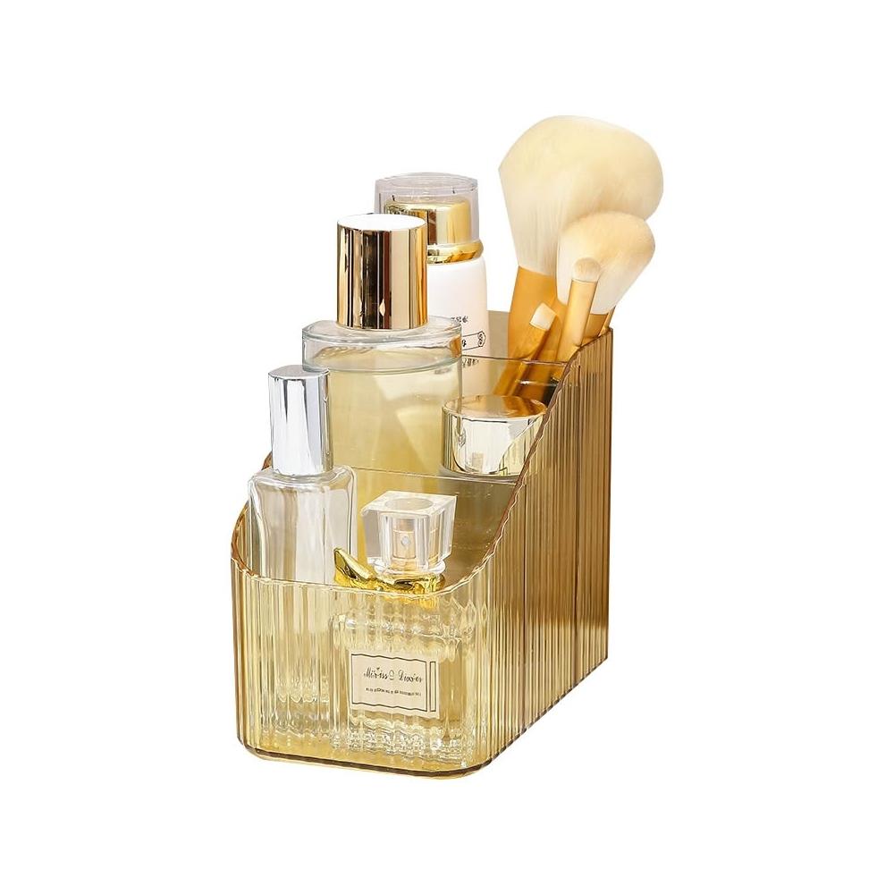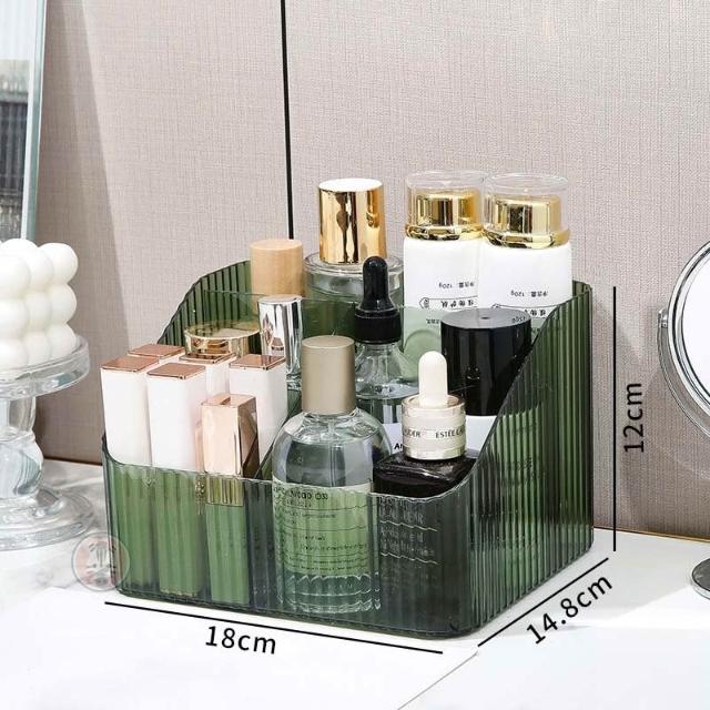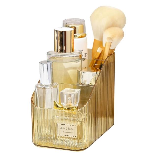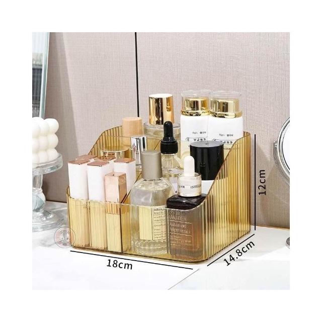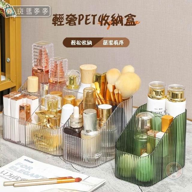 輕奢直條化妝品收納盒∣桌面收納 廚房整理盒 手提化妝品收納 抽屜塑膠收納 保養品整理 輕奢PET收納 日常用品∣麥手作