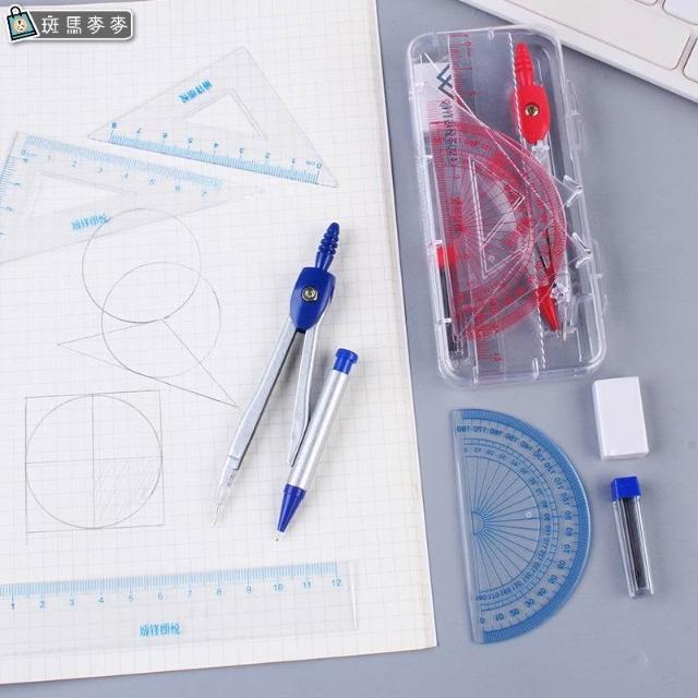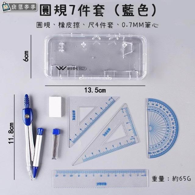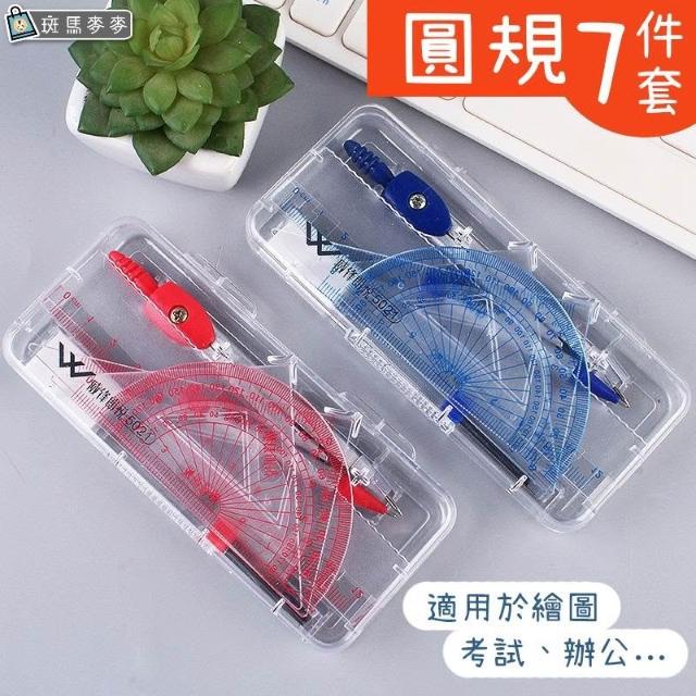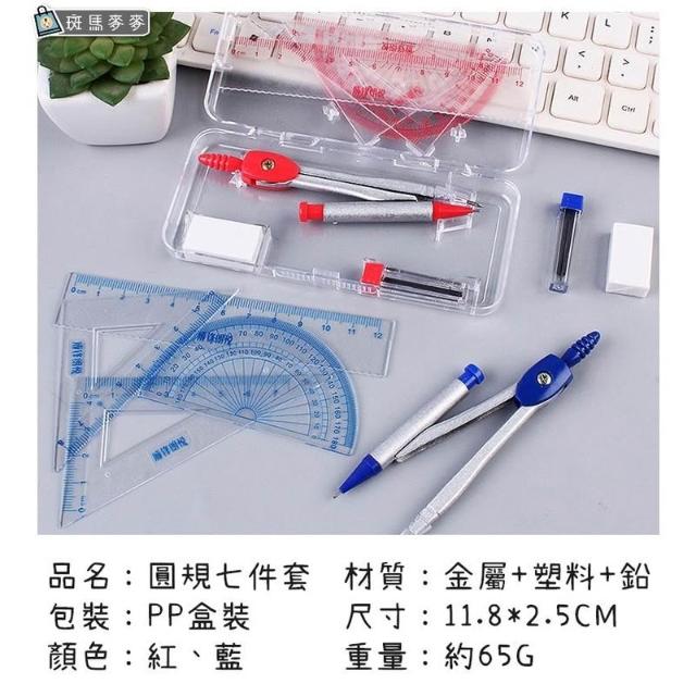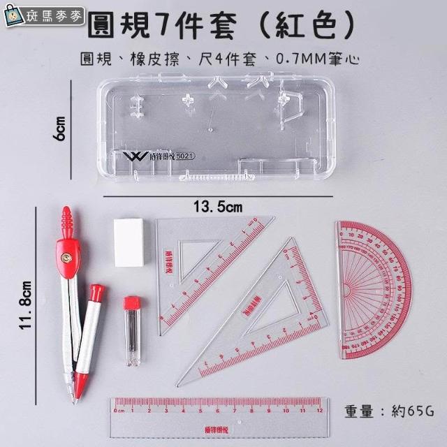七件套圓規尺∣圓規 圓形 文具 繪圖 測量 圓規 直尺 量角器 三角尺 考試 三角板 學習工具︱麥手作