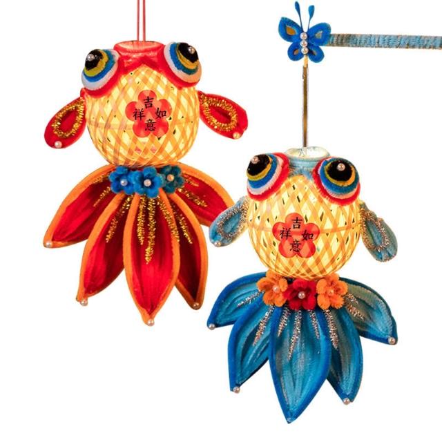 竹編錦鯉燈籠︱新年 元宵節 手提發光 花燈 金魚燈 兒童手工DIY材料包 手作材料包︱麥手作