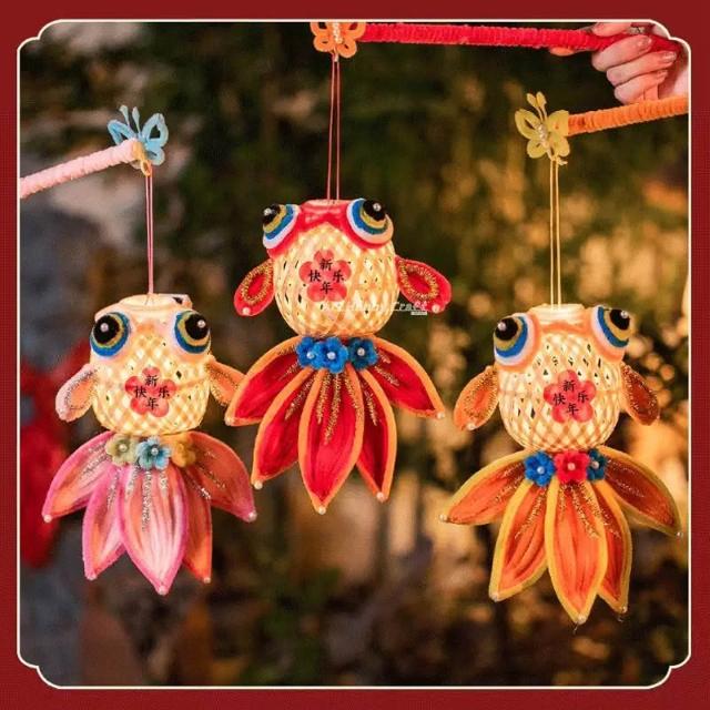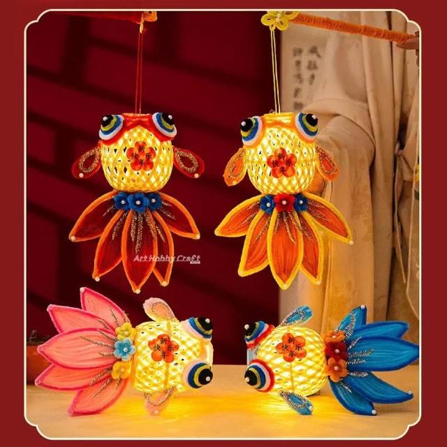 竹編錦鯉燈籠︱新年 元宵節 手提發光 花燈 金魚燈 兒童手工DIY材料包 手作材料包︱麥手作