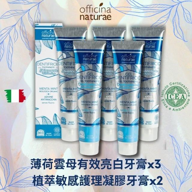 義大利Officina Naturae自然工坊-薄荷雲母有效亮白牙膏X3植萃敏感護理凝膠牙膏X2共5條(特價 無氟 )