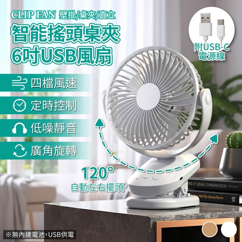 APEX智能搖頭桌夾6吋USB風扇 (壁掛/桌夾/直立)