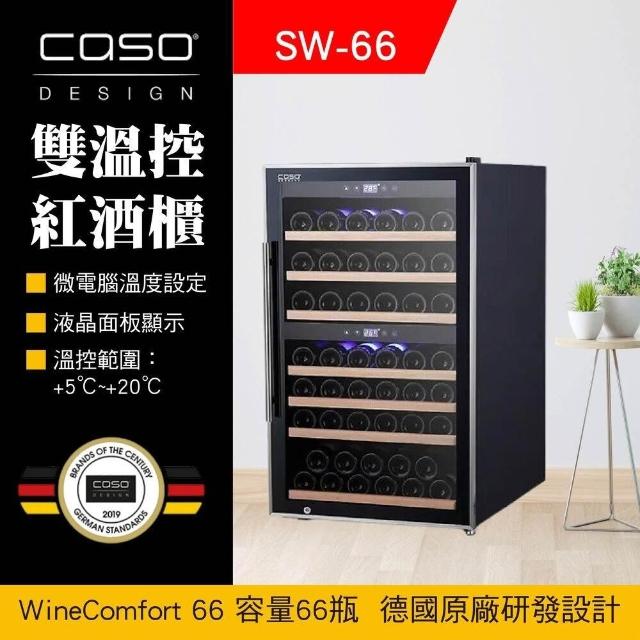 CASO德國CASO 66瓶 雙溫控紅酒櫃 儲酒櫃 獨立雙溫控面板 SW66 (送紅梗紅酒杯)