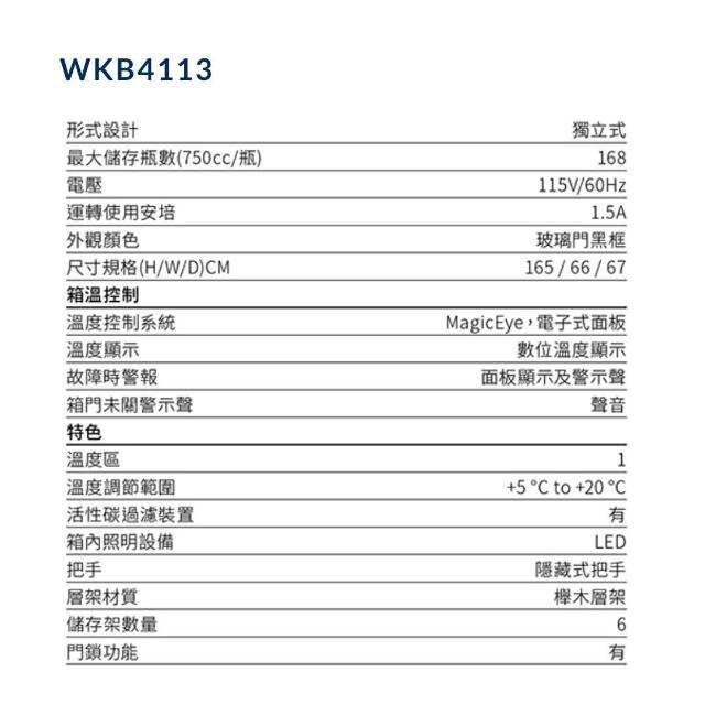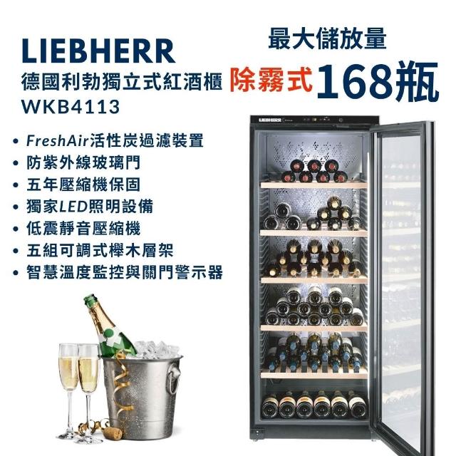LIEBHERR 利勃Liebherr 德國利勃 168瓶裝 除霧式紅酒櫃 送紅梗水晶杯 小酒櫃 酒窖櫃 WKb4113 五年壓縮機保固