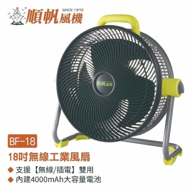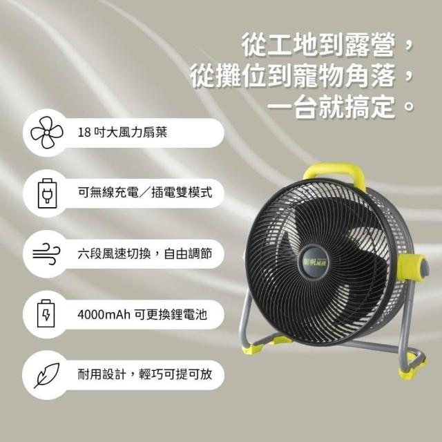 順帆風機[限時加贈2組電池] 順帆 18吋風扇 工業風扇 循環風扇 充電風扇 無線電扇 無線風扇 DC馬達風扇 露營風扇