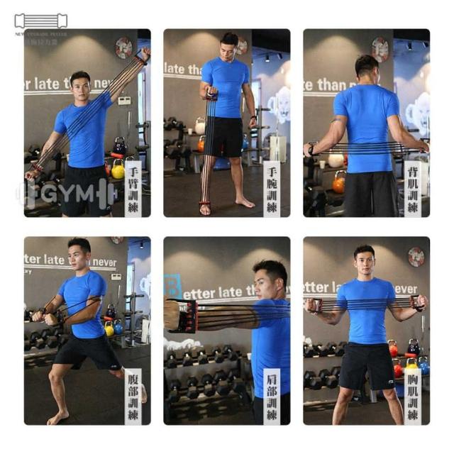 擴胸拉力器 胸肌訓練器 臂肌 腹肌 五檔可調節 五管拉力 拉力繩 運動器材 居家運動 TPR乳膠 可拆 健身(NARMES 健者體育)