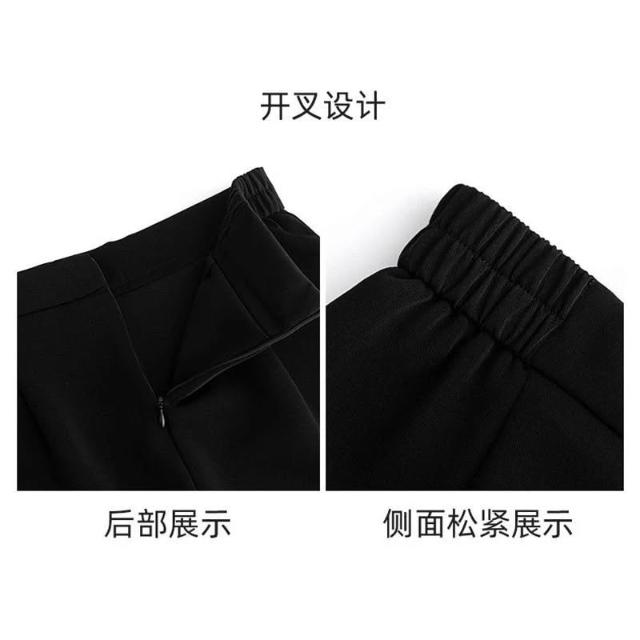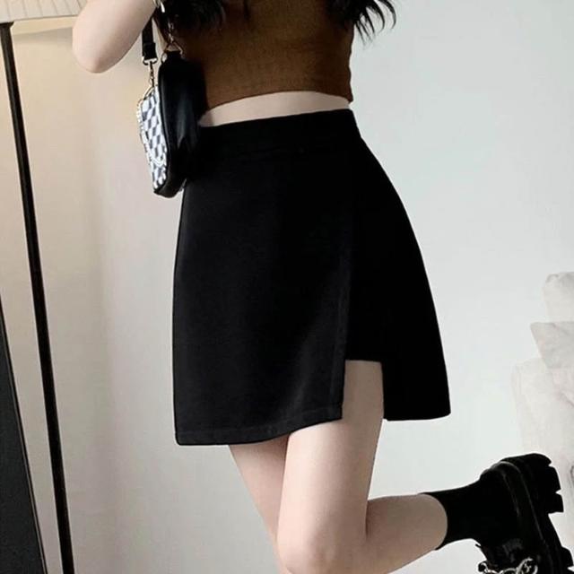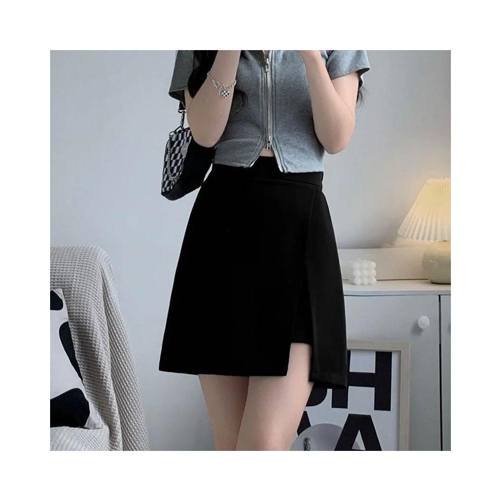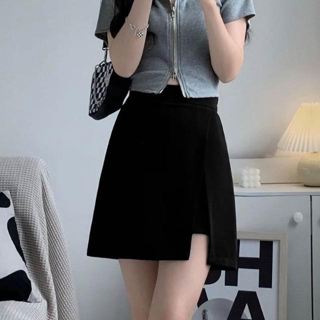 (NARMES)S-4XL 大尺碼短裙 A字裙 開叉半身裙 黑色短裙女夏季開叉西裝半身裙褲高腰顯瘦a字大碼短褲裙