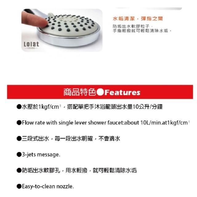 LOLAT 羅力低水壓三段式蓮蓬頭 (HS330CP、出水量大/適用各環境/低水壓環境適用)