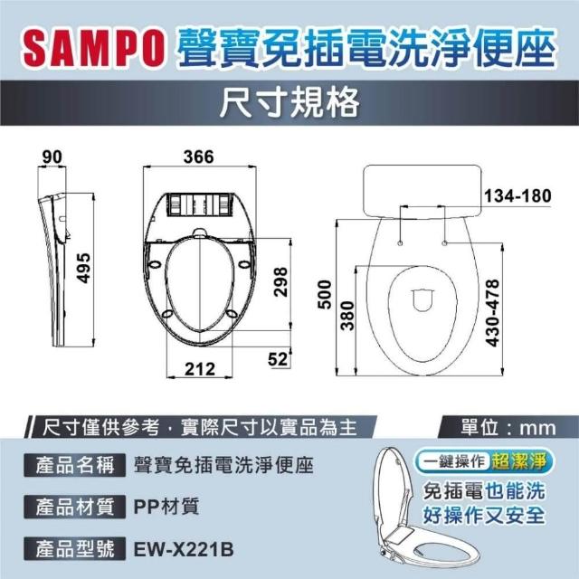 SAMPO 聲寶免插電洗淨便座 馬桶蓋 免插電免治蓋 免治便座(臀洗、婦洗、緩降、免插電)