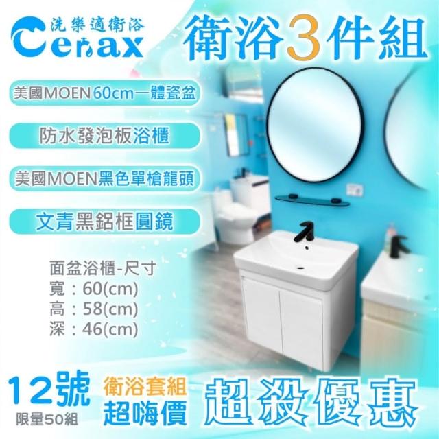 CERAX 洗樂適美國MOEN面盆 60公分浴櫃三件組(PVC浴櫃、 面盆龍頭 、鏡櫃)
