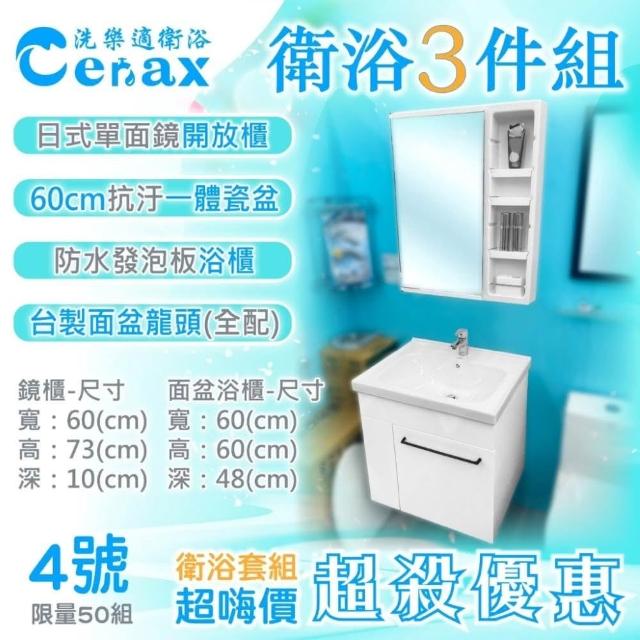 CERAX 洗樂適60公分把手浴櫃+日式鏡櫃+單孔面盆龍頭 衛浴三件組(PVC浴櫃、 面盆龍頭 、鏡櫃)