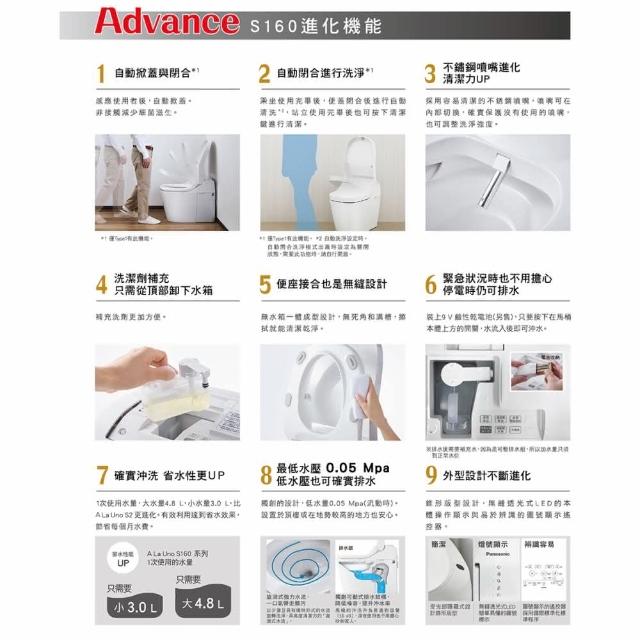 Panasonic 國際牌A La Uno S160 type2 手動掀蓋款 智慧型馬桶座 電腦馬桶 自動洗淨馬桶(電腦馬桶、自動洗淨馬桶、國際牌、日本)