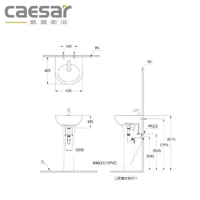 CAESAR 凱撒衛浴40cm瓷盆 L2140S 單孔面盆/L2140D 雙孔面盆 不含瓷腳(面盆、浴室、衛浴)