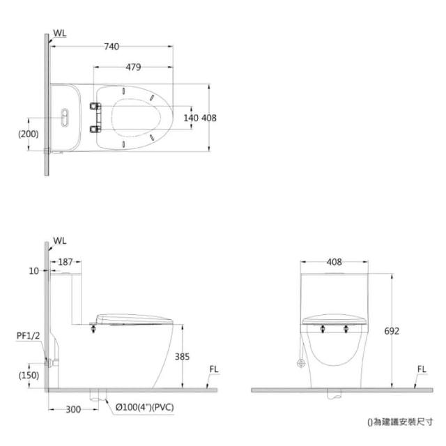 CAESAR 凱撒衛浴金級省水雙段式單體省水馬桶CF1363 管距30cm(馬桶、衛浴、金級省水、單體馬桶)