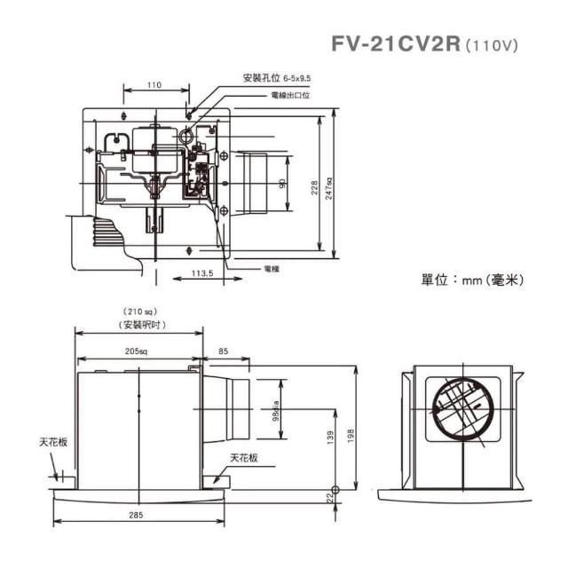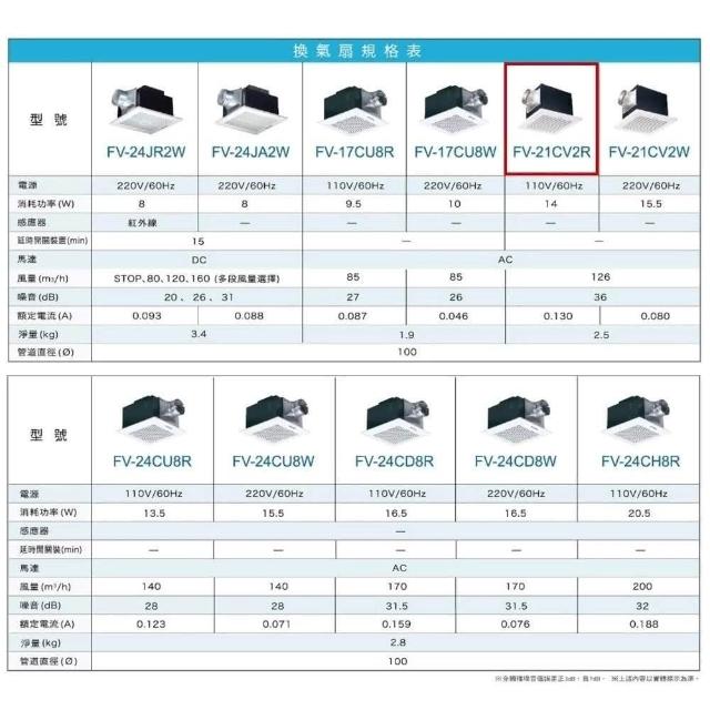 Panasonic 國際牌FV-21CV2R / FV-21CV2W 電壓110V / 220V 浴室換氣扇(國際牌、排風扇、換氣扇、浴室)