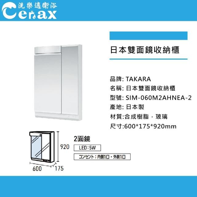 Takara日本原裝進口 60cm LED雙面鏡收納櫃 含基本安裝 SIM-060M2AHNEA-2(日式、衛浴、鏡櫃、日式衛浴)