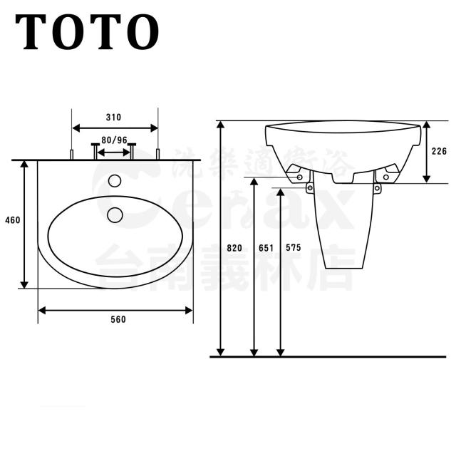 TOTO原廠公司貨 LW250CGU 56cm 壁掛式臉盆 面盆 洗手台 不含龍頭 (面盆、洗手台、TOTO)