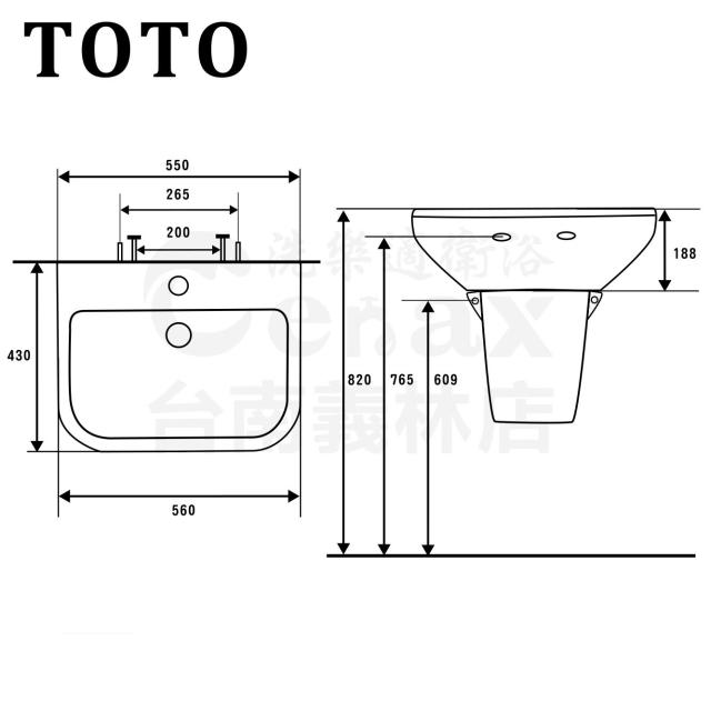 TOTO原廠公司貨 LW286CME 55cm壁掛式臉盆 面盆 洗手台 不含龍頭 (面盆、洗手台、TOTO)