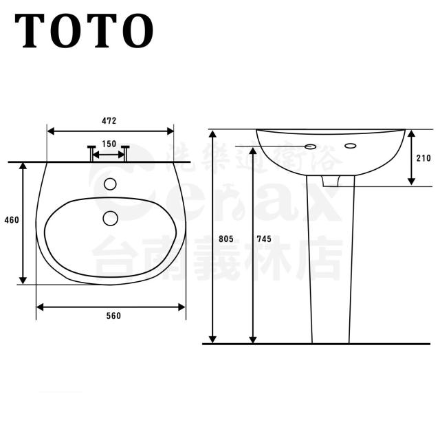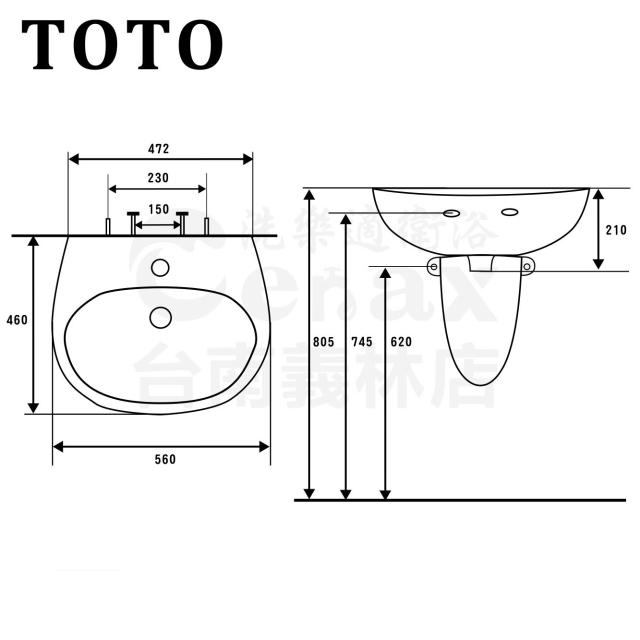TOTO原廠公司貨 L238CGUT1 56cm 壁掛式臉盆 面盆 洗手台 不含龍頭 (面盆、洗手台、TOTO)