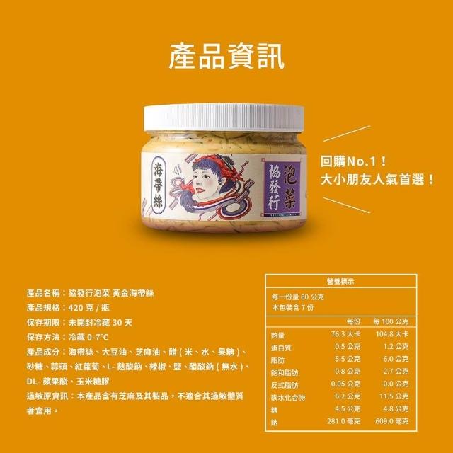 協發行泡菜黃金海帶絲-任選(420g/瓶)|冷藏配送