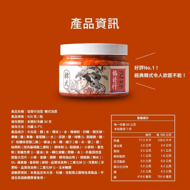 協發行泡菜韓式泡菜-任選(420g/瓶)|冷藏配送