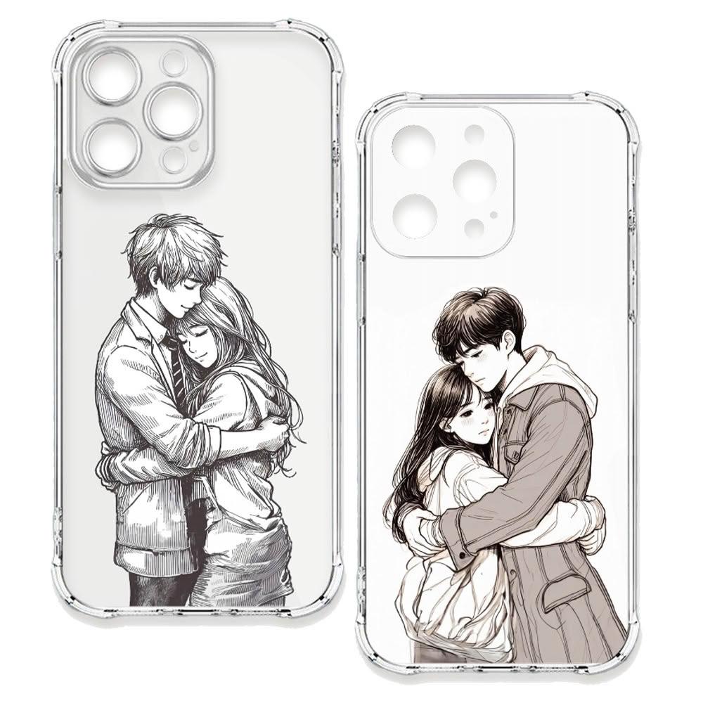 TRONTRON Google 系列 情侶深情擁抱素描系列 四角防摔 軟殼 手機殼適用 Google Pixel 8/ 7/ 6/ A