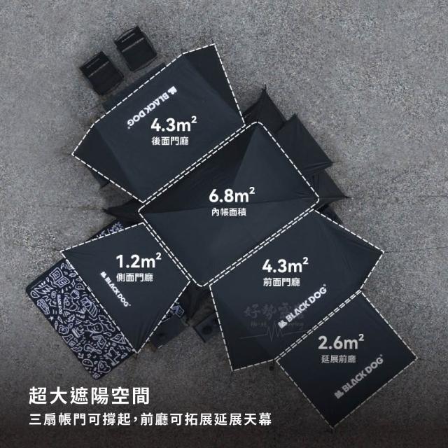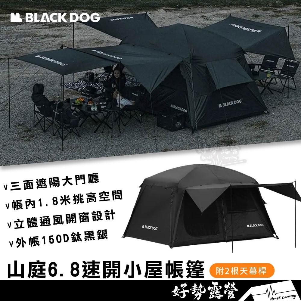 BLACKDOG 黑狗 山庭6.8 小屋帳篷【好勢露營】拓展天幕 黑化速搭帳篷 一室三廳 黑膠帳篷 防雨防曬