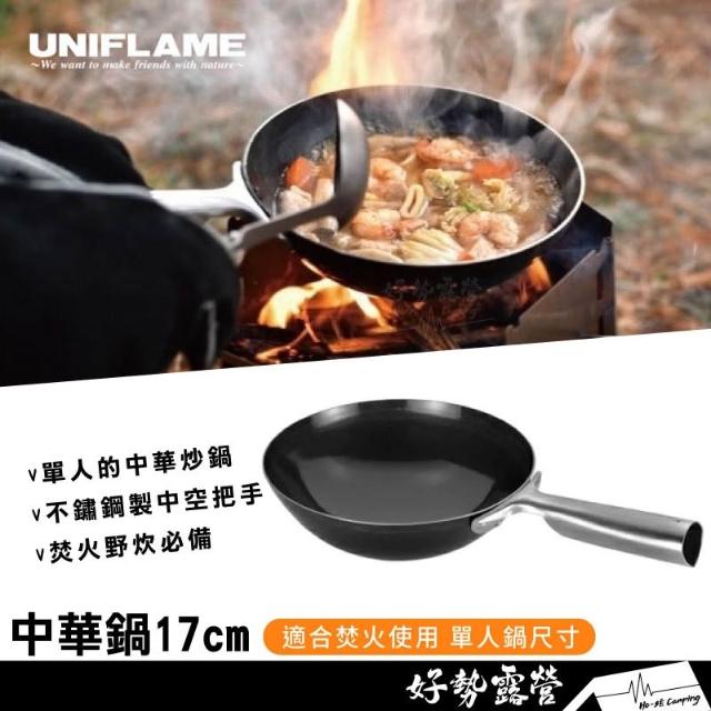 UNIFLAME 中華鍋17cm #U660027【好勢露營】戶外鐵鍋 鍋子 露營 野炊鍋子 中華炒鍋 輕便煎鍋