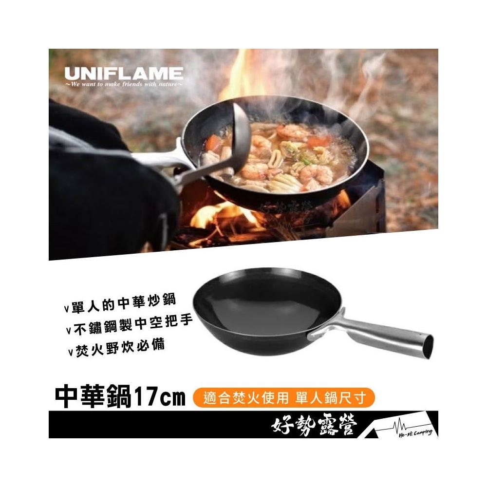 UNIFLAME 中華鍋17cm #U660027【好勢露營】戶外鐵鍋 鍋子 露營 野炊鍋子 中華炒鍋 輕便煎鍋