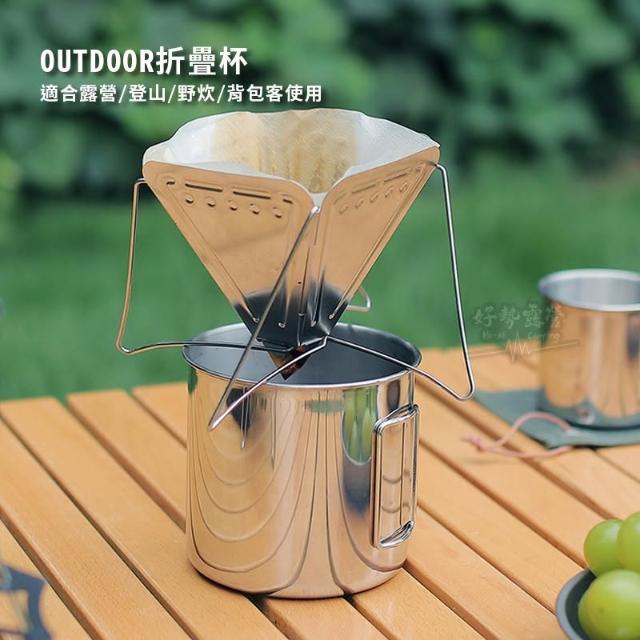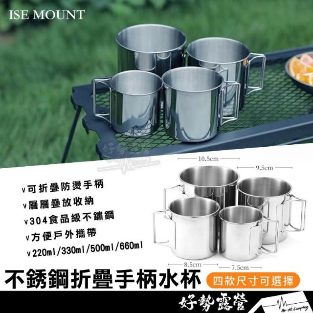 ISE MOUNT 304不銹鋼折疊手柄水杯【好勢露營】不鏽鋼杯 露營餐具 露營折疊杯 可直火不銹鋼杯 戶外套杯