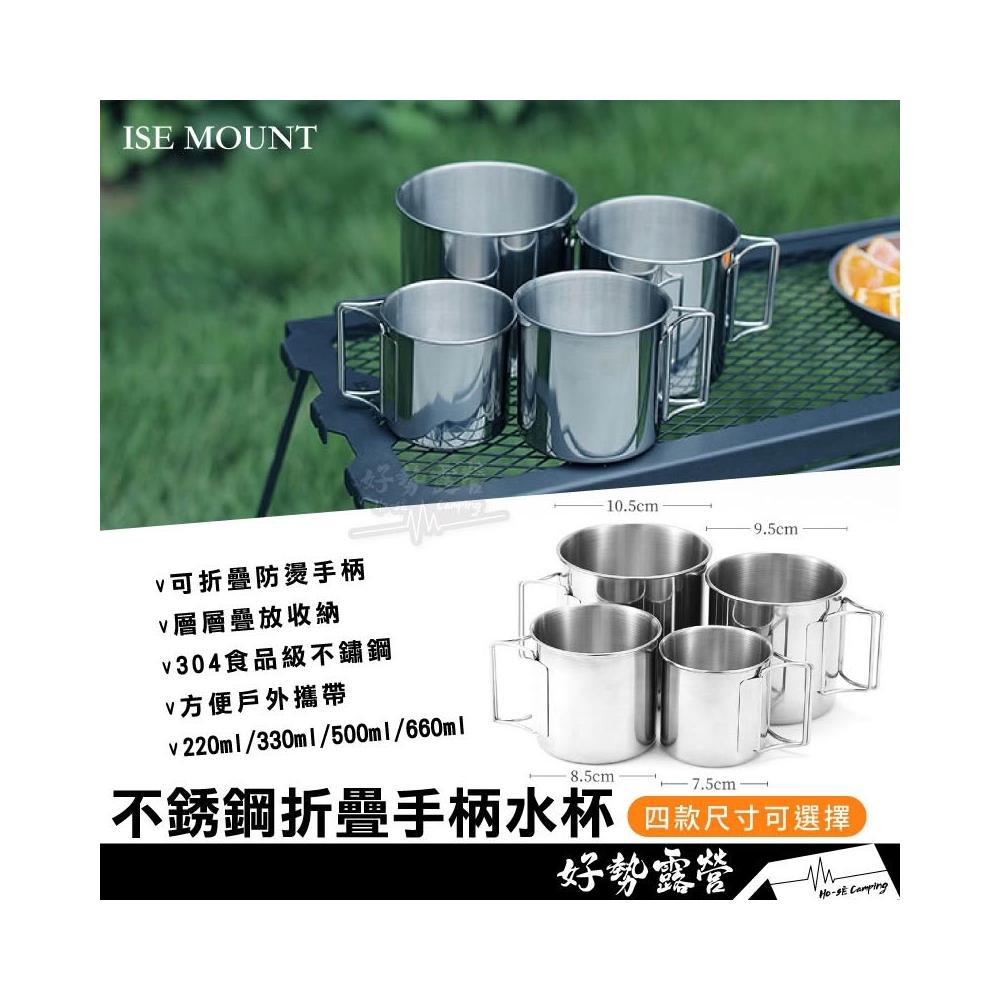ISE MOUNT 304不銹鋼折疊手柄水杯【好勢露營】不鏽鋼杯 露營餐具 露營折疊杯 可直火不銹鋼杯 戶外套杯