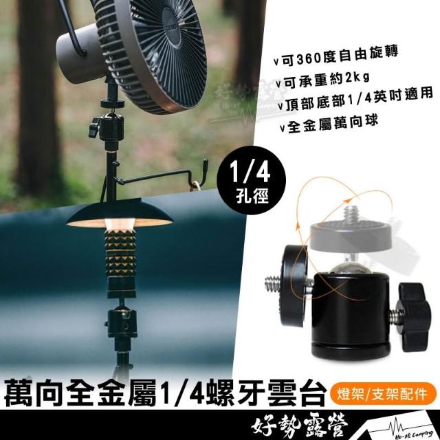 向全金屬1/4螺牙雲台【好勢露營萬向球型雲台 燈架配件 風扇支架配件 戶外燈 照明燈具支架 燈柱配件 相機手機腳架