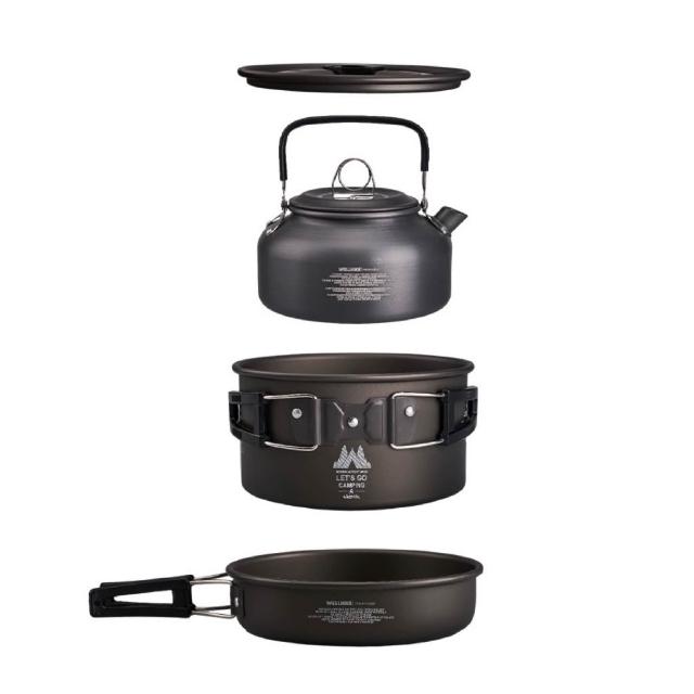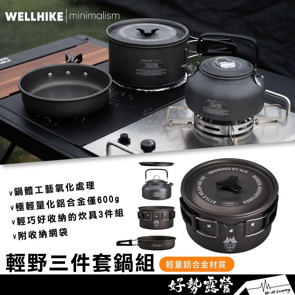 WELLHIKE 輕野三件套鍋組【好勢露營】輕量鋁合金鍋具組3件組 餐具組 戶外 野餐 鍋組 煎鍋煎盤鍋子 燒水壺