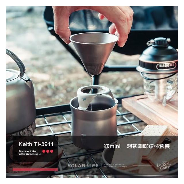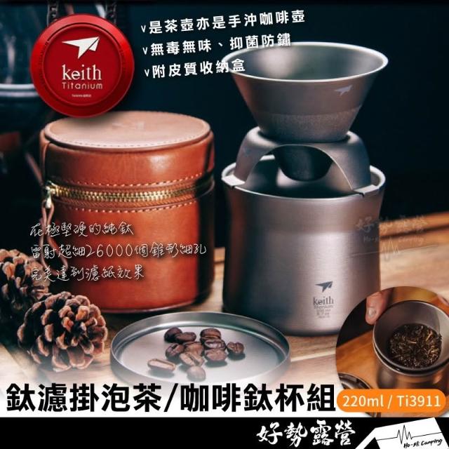 鎧斯Keith 鈦mini泡茶咖啡鈦杯套裝220ml 【好勢露營】手沖咖啡組 鈦濾杯 沖泡濾杯套裝 Ti3911 咖啡鈦