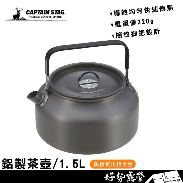 CAPTAIN STAG 日本鹿牌 鋁製茶壺/1.5L #UH-4123【好勢露營】戶外燒水壺 茶壺 輕量水壺 黑鋁陽極
