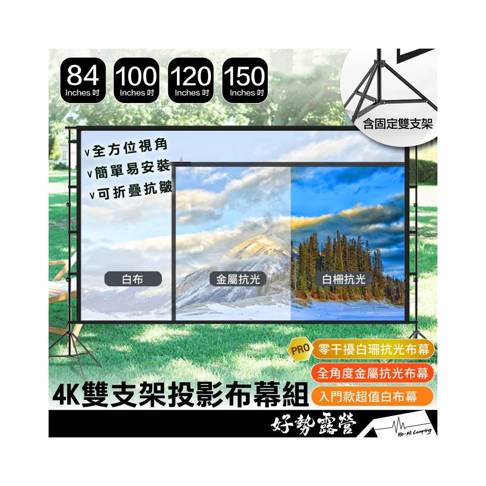 4K雙支架投影布幕組【好勢露營】超大戶外電影院 金屬抗光白柵抗光布幕三角落地式移動幕布戶外電影院 投影幕100吋120吋