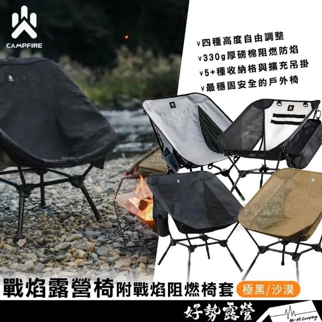 CAMPFIRE 營火部落 戰焰露營椅 附戰焰阻燃椅套【好勢露營】高度可調折疊椅 阻燃防焰戶外椅月亮椅 登山椅風透紗網紗