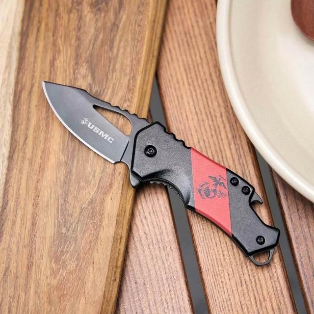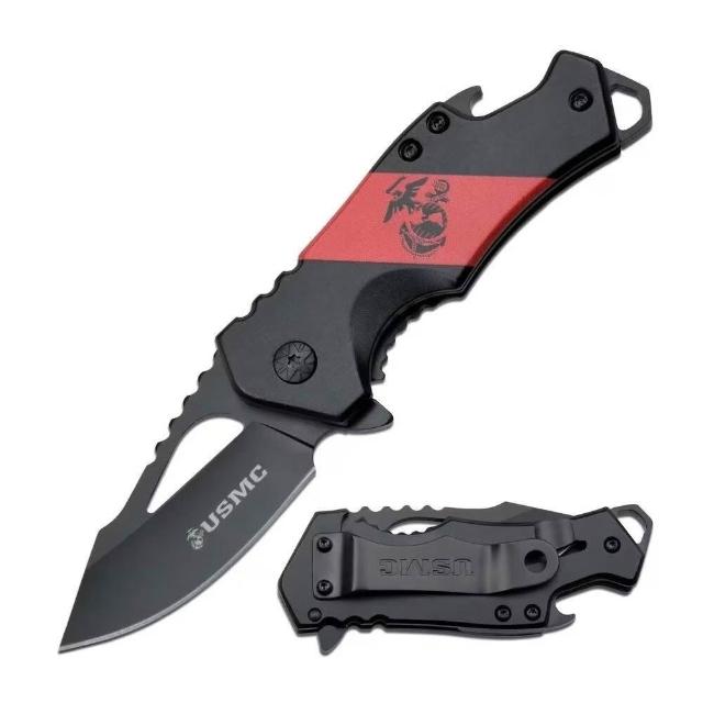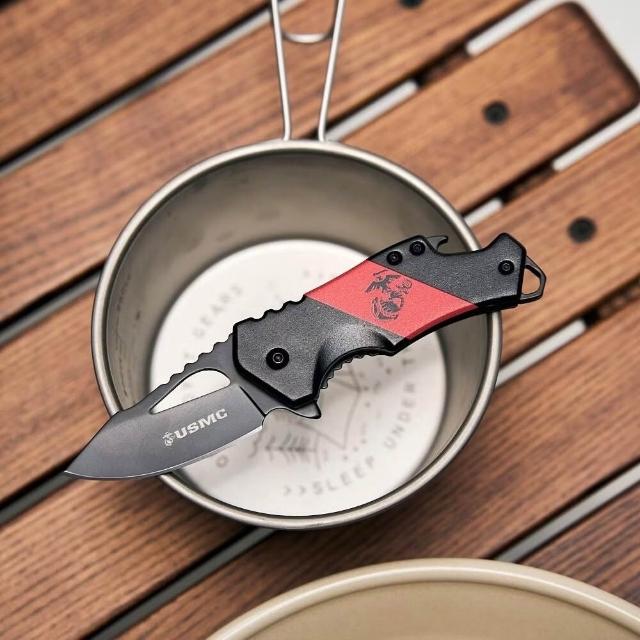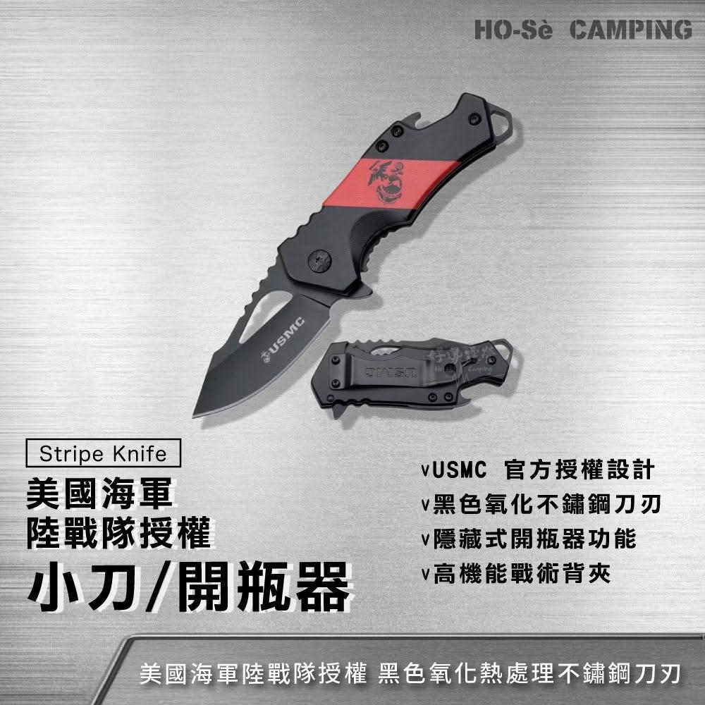 USMC 美國海軍陸戰隊授權小刀兼開瓶器 M-882RBK【好勢露營】戰術摺疊刀 Blood Stripe Knife