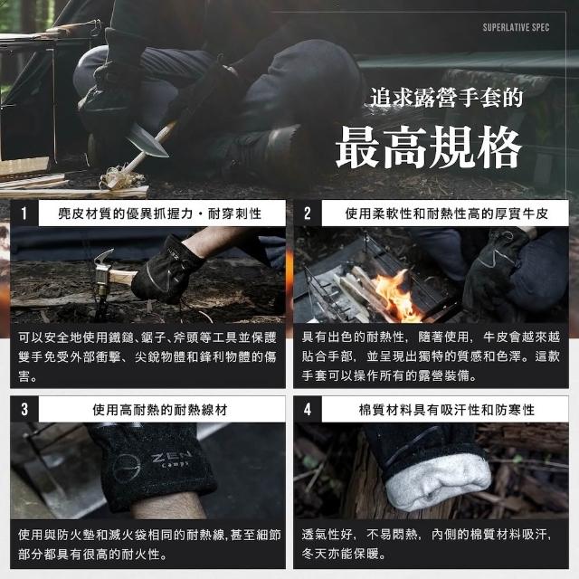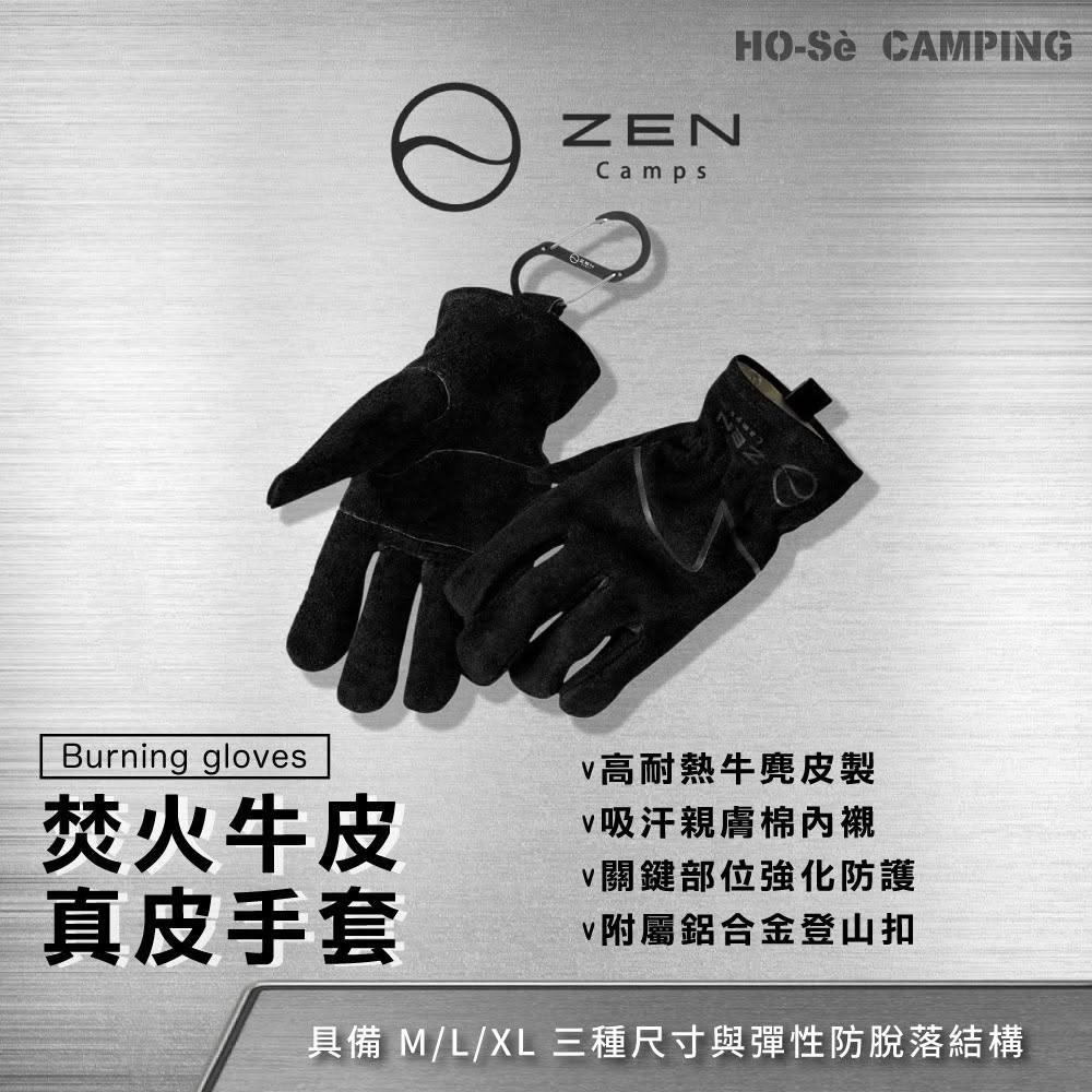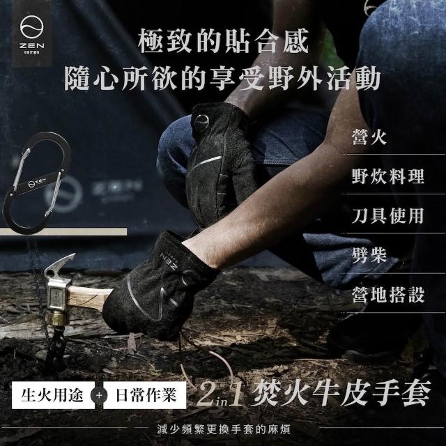 日本ZEN 焚火牛皮真皮手套 M/L/XL【好勢露營】戶外生火露營烤肉皮手套 耐熱手套 焚火手套 附專用登山扣