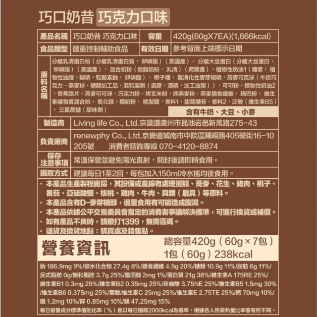 renew phy 巧口奶昔 韓國奶昔 經典巧克力口味 60g 7包/袋