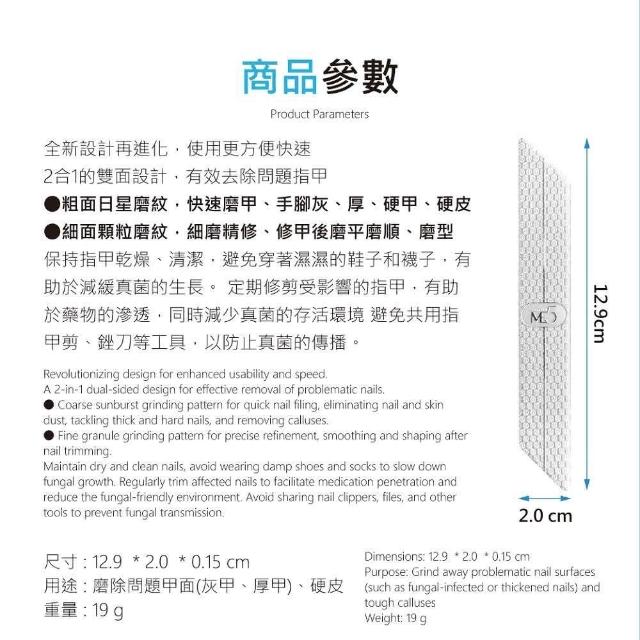 • 粗面磨紋可去除硬甲、灰甲及厚皮